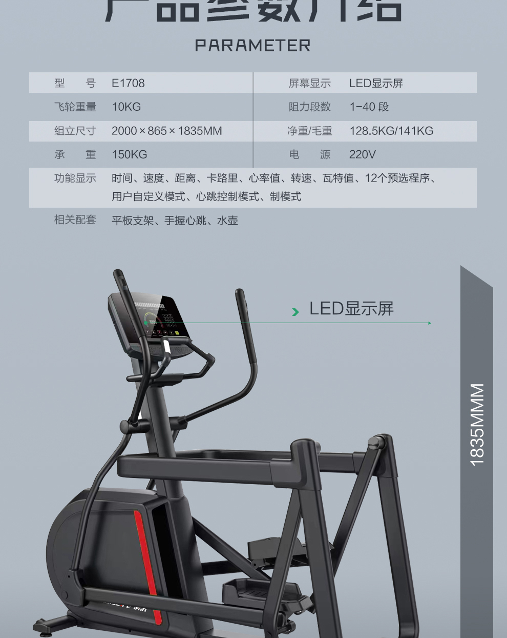澳沃新生活商用椭圆机15.6彩屏有氧健身器材E1700T